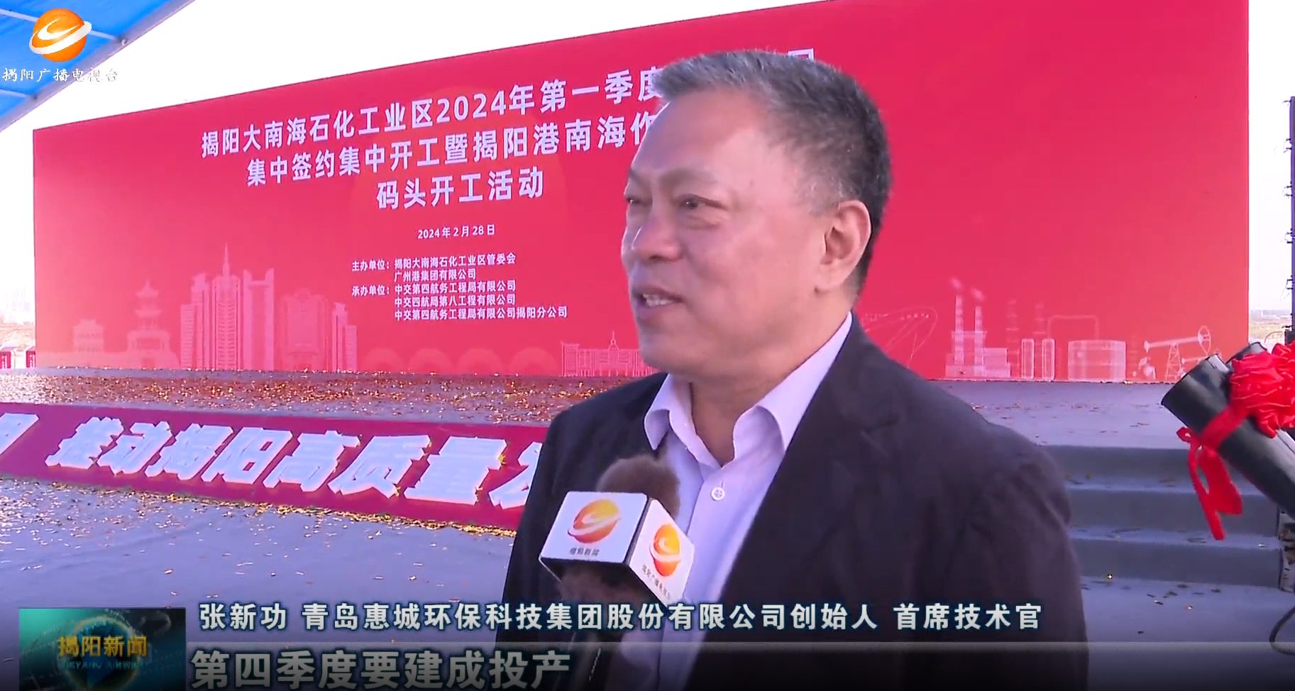 为进一步加快大南海石化产业的延链、补链、强链,为大南海高质量发展增添蓬勃新动力,助力揭阳市发展新质生产力,2月28日,揭阳大南海石化工业区举行2024年第一季度重点项目集中签约集中开工活动,揭阳市领导王胜、支光南、葛承书、蔡淡群、黄熹、李晋龙等出席开工仪式,青岛竞技宝电竞环保科技集团股份有限公司创始人、首席技术官张新功受邀参加活动。