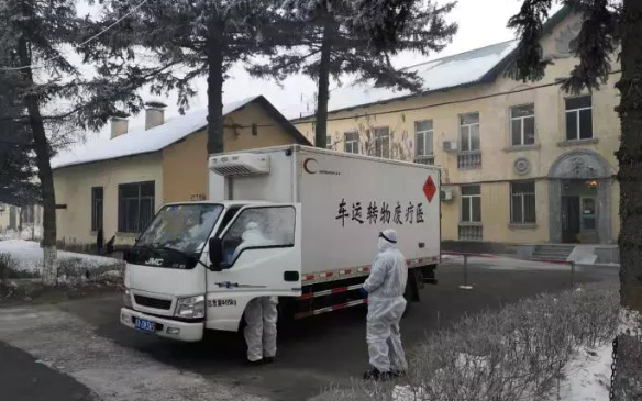 在黑龙江省传染病防治院,医疗废物要照平时更加及时的转运。此时,医疗废物转运车正停在这里,对医疗废物进行清运。黑龙江省传染病防治院副院长刘玉琴介绍,截至1月30号24时,这里共收治两例确诊病例,疑似病例10多例。相对来说,这些患者病情都比较平稳。按照国家和黑龙江省疾控部门的要求,黑龙江省传染病防治院严格执行医疗废物处置标准,使用黄色收集袋封存医疗废物,并喷洒消毒液,并与转运单位随时沟通,及时转运。刘玉琴说:“每天早晨七点半到八点半会有专车过来,定时、定点、定人转接。根据患者量产生垃圾不同,下午可能要临时再过来一次,集中再收走。”